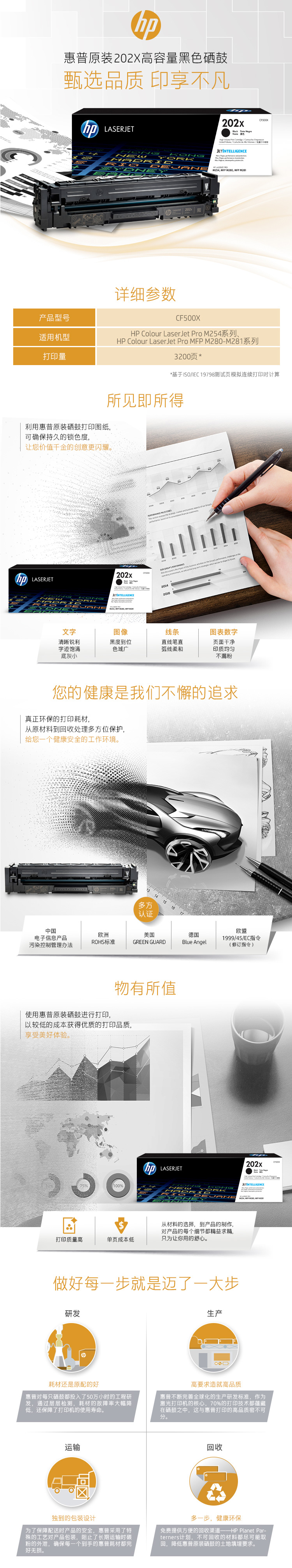 惠普(HP)202X 黑色硒鼓CF500X 打印量3200頁 適用于HP Color LaserJet Pro M254系列 HP Color LaserJet Pro MFP M280/M281 系列