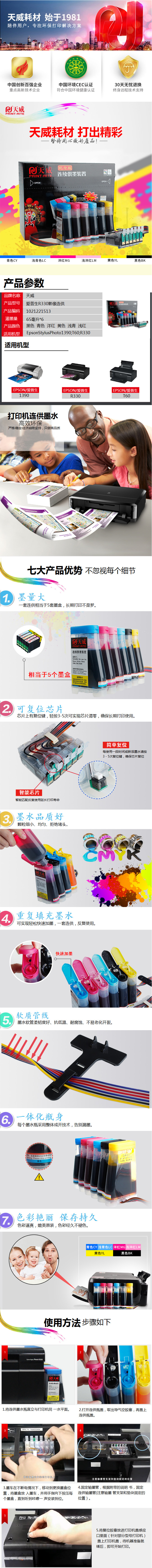 • 商品名稱:天威 R330墨盒 影像裝連供墨水 六色一套 適用于愛普生EPSON R330 1390 T60打印機