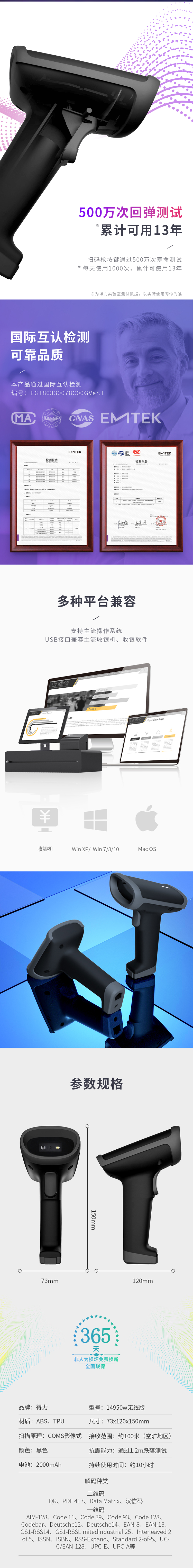 • 商品名稱:得力(deli) 14950W二維碼掃描槍 手機(jī)支付條形碼掃碼器 快遞條碼槍 黑色