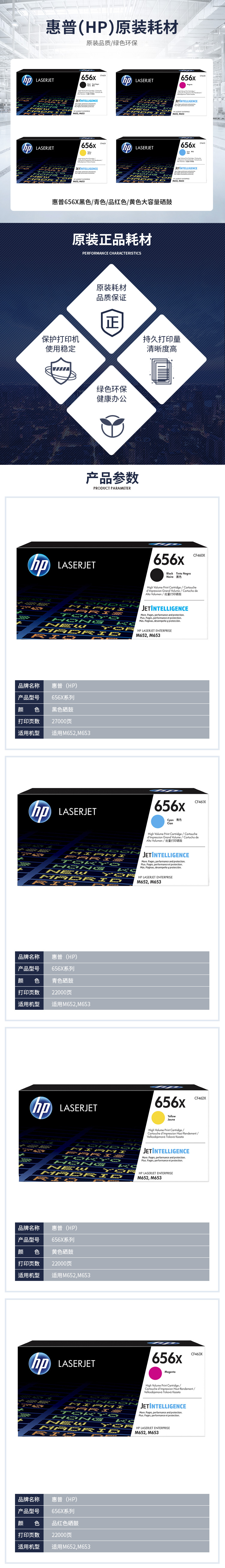 • 商品名稱:惠普(HP)656X 黑色大容量硒鼓CF460X 打印量27000頁 適用于HP Color LaserJet Enterprise M652/M653 系列