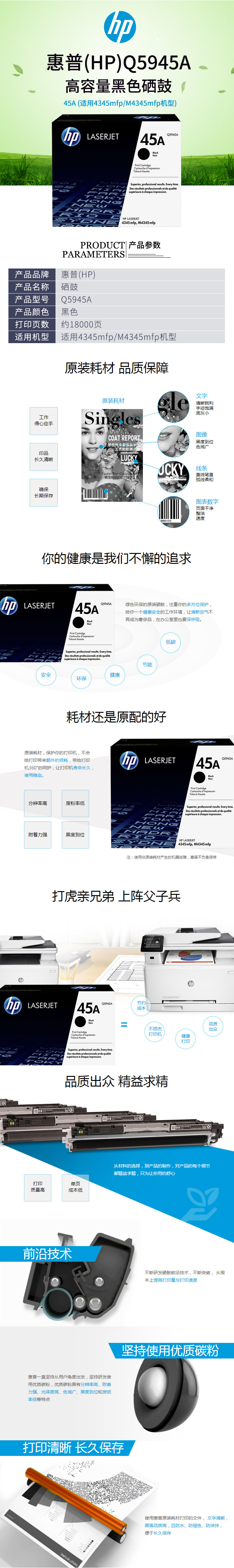 • 商品名稱(chēng):惠普(HP)45A 黑色硒鼓Q5945A 打印量18000頁(yè) 適用于HP LaserJet M4345 MFP系列