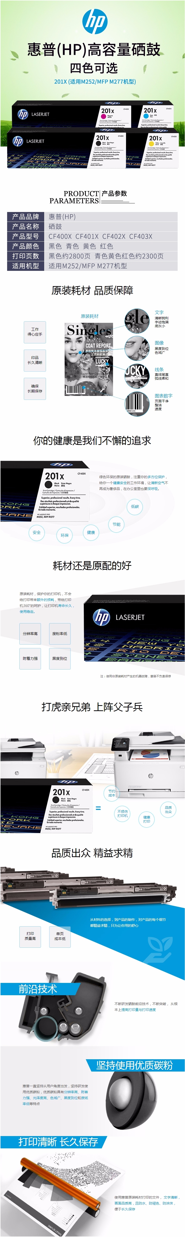 惠普(HP)201X 黑色大容量硒鼓CF400X 打印量2800頁 適用于HP Color Laser Jet Pro M252系列 HP Color Laser Jet Pro MFP M277系列 HP Color LaserJet Pro MFP M274n