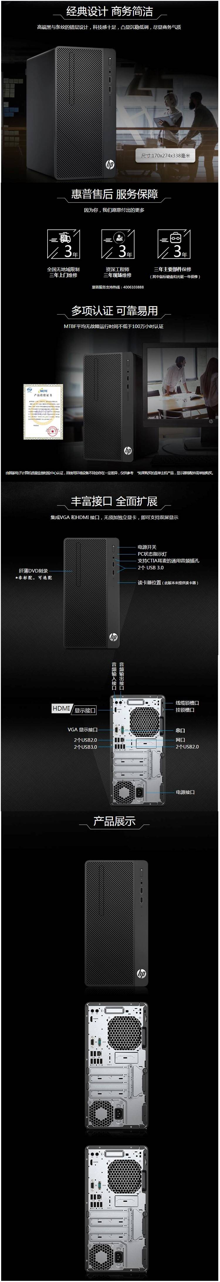 - 商品名稱:惠普(HP)HP 288 Pro G4 MT Business PC-N7011030059 臺式計(jì)算機(jī) I3-9100/4G/1TB/DVDRW/集顯/麒麟操作系統(tǒng)(桌面版)V4/21.5英寸顯示器/含鍵鼠/三年保修