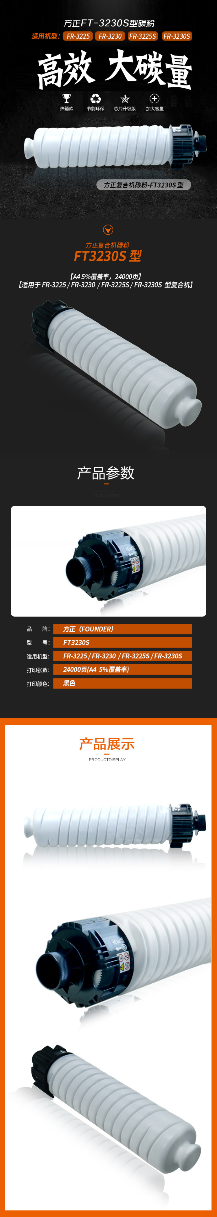 - 商品名稱:方正(Founder)FT3230S黑色碳粉墨粉 印量24000頁(yè) 適用于FR3225/FR3225S/FR3230/FR3230S復(fù)合機(jī)