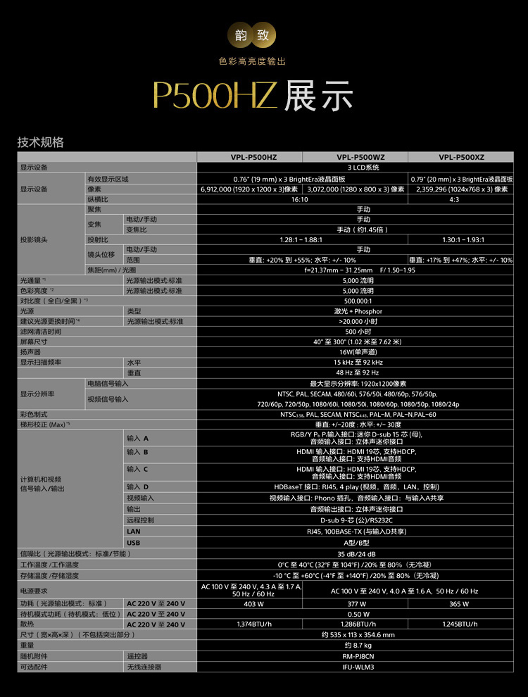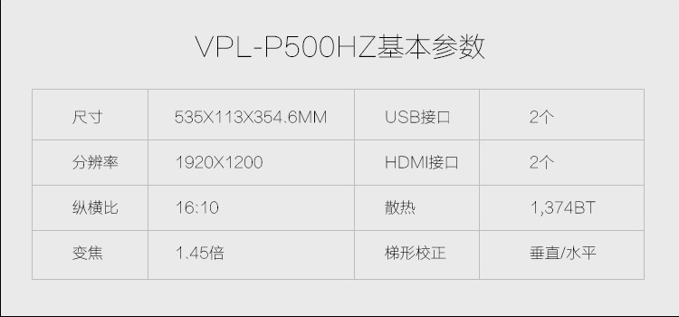 • 商品名稱:索尼(SONY)VPL-P500HZ 激光投影儀 寬屏 5000流明 雙HDMI接口