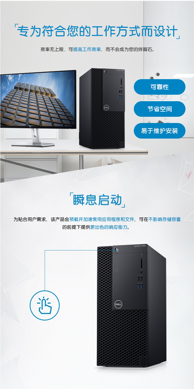 - 商品名稱:戴爾(DELL)臺式計算機OptiPlex 3060 Tower 240535: i3-8100/8GB/128GB+1TB/DVDRW/Win10 H/鍵鼠/3年上門服務/E2216H 21.5寸