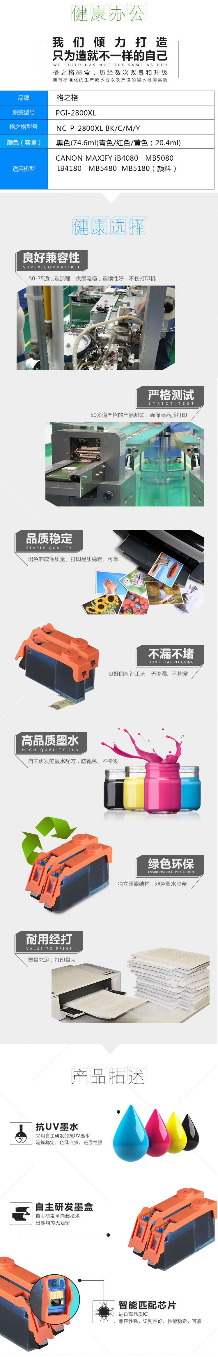 • 商品名稱:格之格(G&G) NC-P-2800XLY黃色墨盒 適用佳能IB4080/4180 MB5480/5080