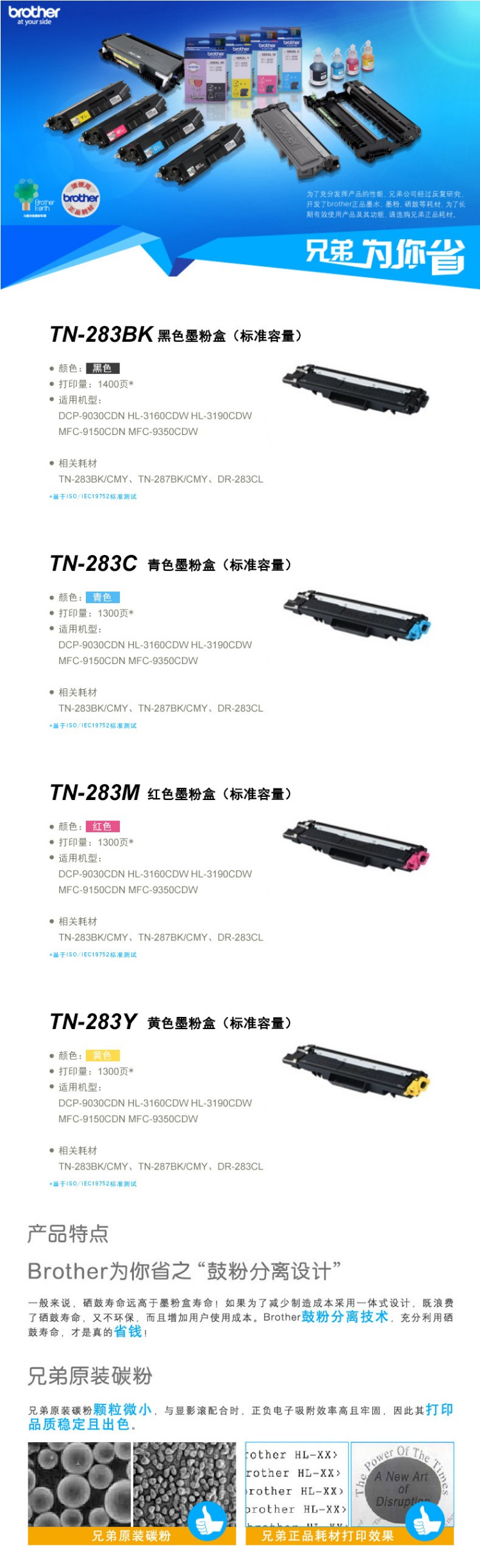 • 商品名稱:兄弟(BROTHER)TN-283C/M/Y 三色套裝墨粉盒 適合HL-3160 3190 DCP-9030 MFC-9150 9350CDW 打印機(jī)