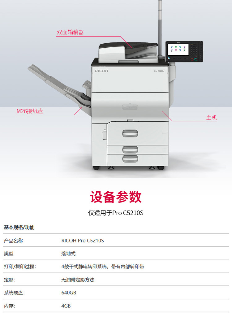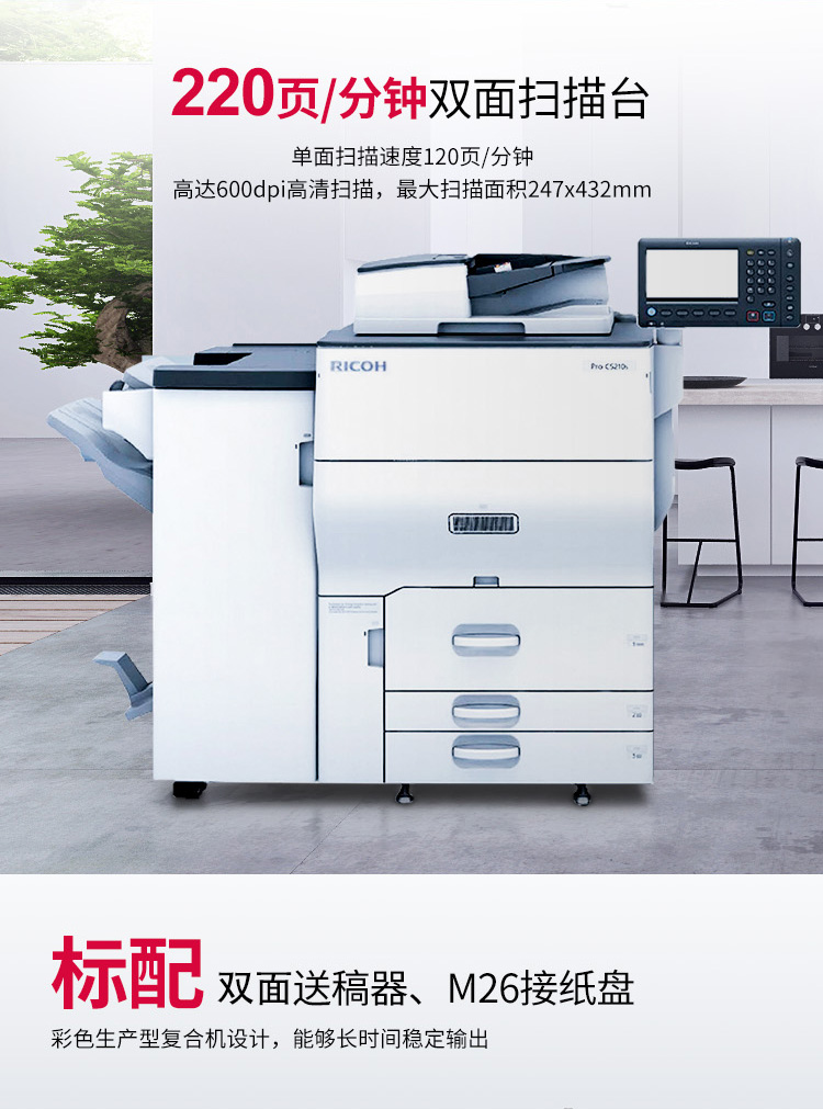 • 商品名稱:理光(Ricoh)PRO C5210S 彩色生產(chǎn)型數(shù)碼印刷機(jī) (主機(jī)+M26接紙盤)