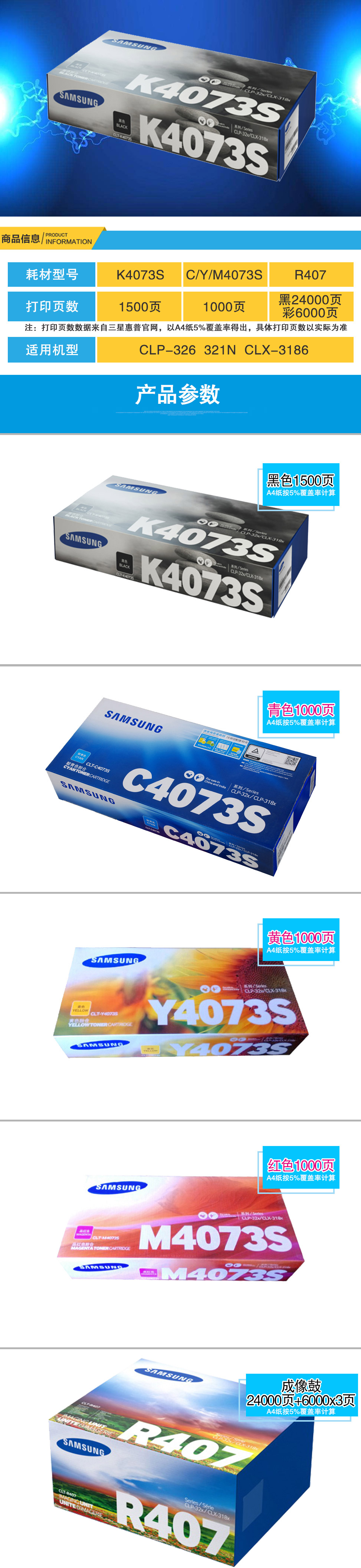 - 商品名稱:三星(SAMSUNG)CLT-Y4073S/XIL黃色墨粉 適用于CLP-328 326 321N 3186(約1000頁(yè))