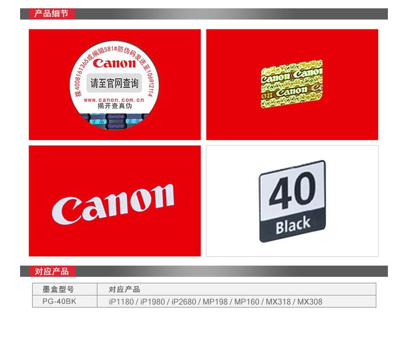 • 商品名稱:佳能(Canon)PG-40黑色墨盒 適用iP1180/MP198/MX318/MX308