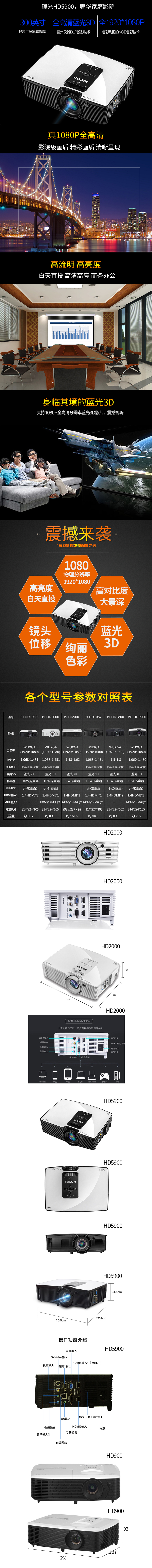 • 商品名稱:理光(Ricoh)HD5900投影儀 4500流明 分辨率1920*1080