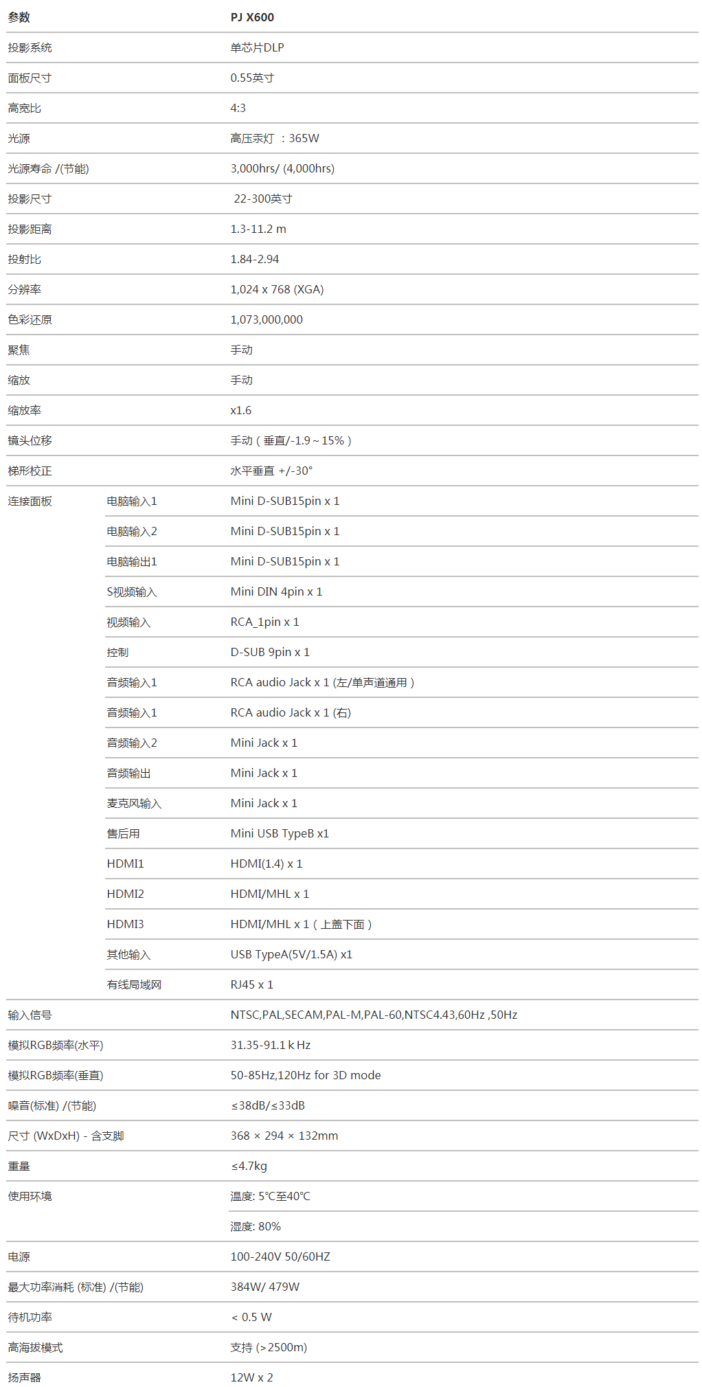 • 規(guī)格:X600投影儀