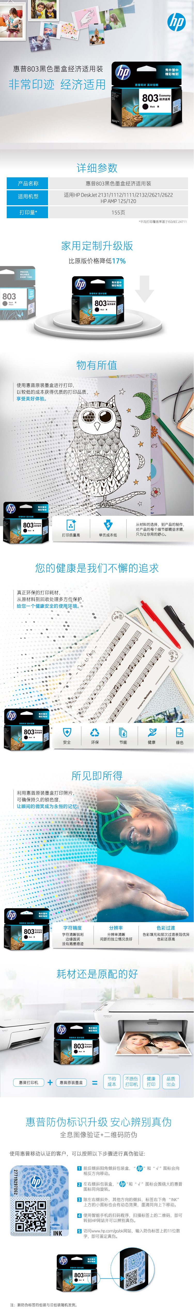 • 商品名稱:惠普 (HP) 3YP42AA 803 黑色墨盒 適用HP DJ 1111, 1112, 2131, 2132, 2621, 2622, 2623,HP AMP 120, 125