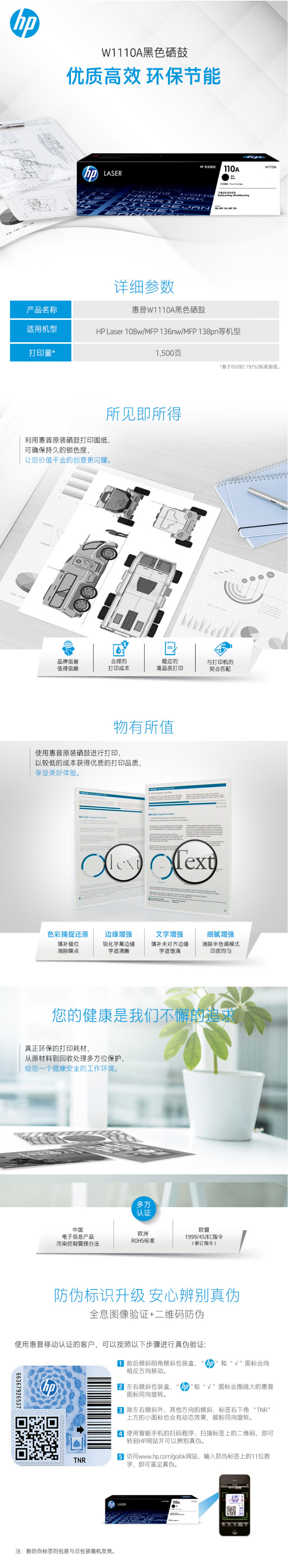 - 商品名稱:惠普(HP) W1110A 黑色硒鼓 110A 打印量約1500頁 適用于HP 108a/108w/136a/136w/136nw/138p/138pn/138pnw(多功能一體機(jī))
