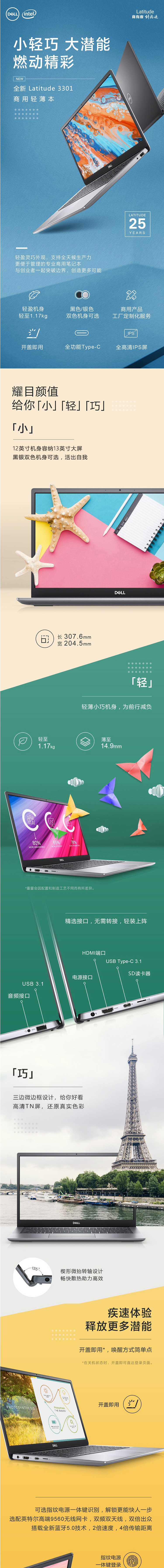 戴爾(DELL)便攜式計(jì)算機(jī)Latitude 3301 260011: i5-8265U/8GB/256G SSD/集顯/13.3寸(1366x768)/Win10 H/3年上門保修(配包鼠)