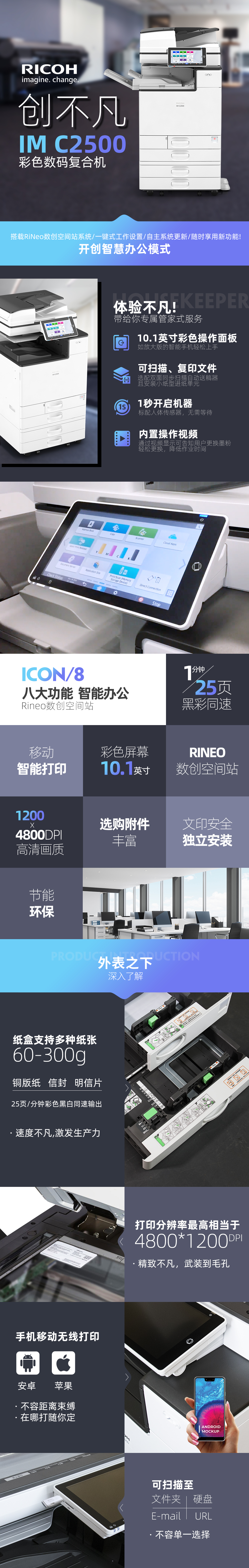 - 商品名稱:理光(Ricoh)IM C2500(配RCNGOP)彩色激光復(fù)印機(jī)(主機(jī)+雙面打印+雙面自動(dòng)送稿器+1200張供紙量+原廠工作臺(tái)+APP辦公軟件)