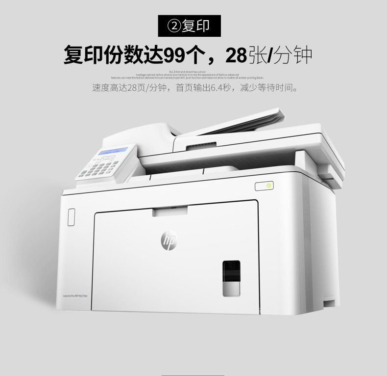 惠普(HP)A4黑白激光多功能一體機(jī)LaserJet Pro MFP M227fdn 打印 復(fù)印 掃描 傳真 自動(dòng)雙面 有線網(wǎng)絡(luò) 28ppm 分辨率1200×1200dpi 適用耗材:CF230A/CF230X/CF232A 鼓粉分離