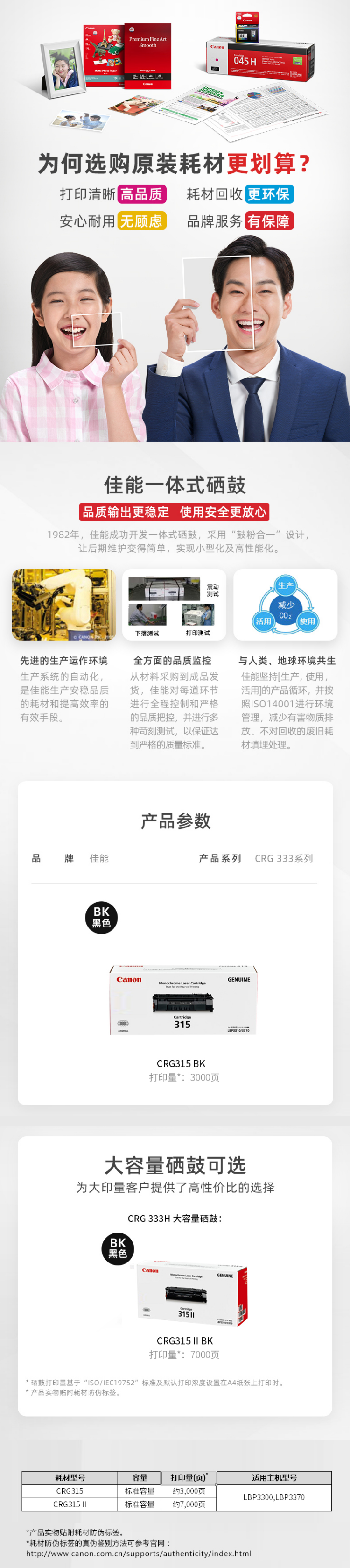 - 商品名稱:佳能(Canon) CRG 315 黑色硒鼓 打印量3000頁(yè) 適用于LBP3310,LBP3370
