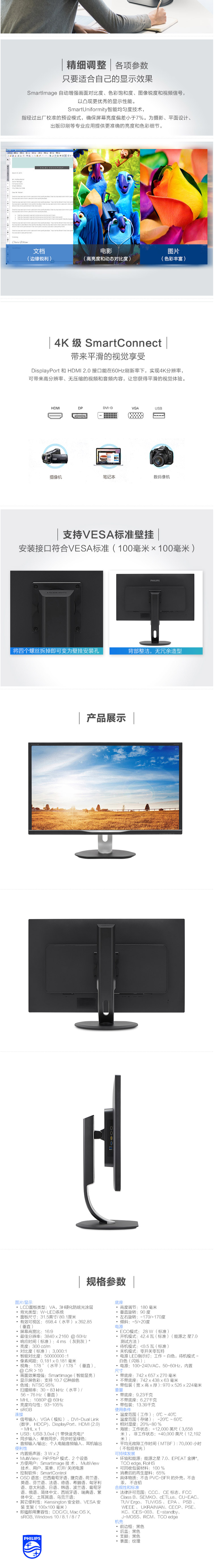 • 商品名稱(chēng):飛利浦 328P6VJEB 31.5英寸4K液晶顯示器
