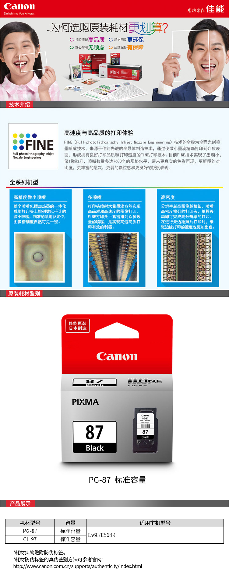 • 商品名稱:佳能(Canon) PG-87 黑色墨盒 打印量800頁 適用于E568、E568R