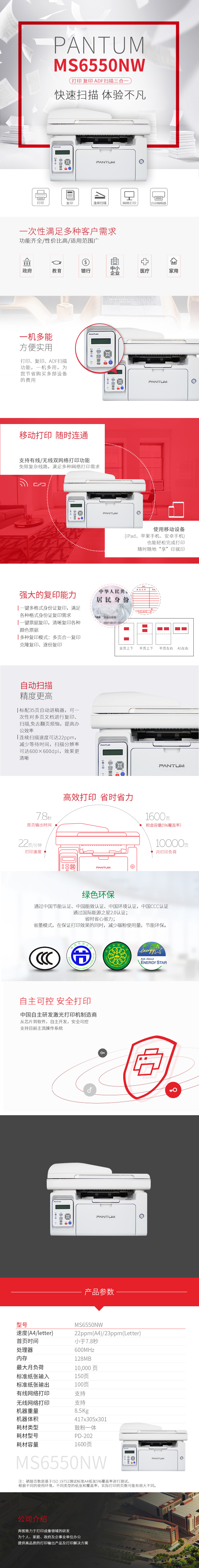 - 商品名稱(chēng):奔圖(PANTUM) MS6550NW A4黑白多功能一體機(jī) 打印/復(fù)印/掃描