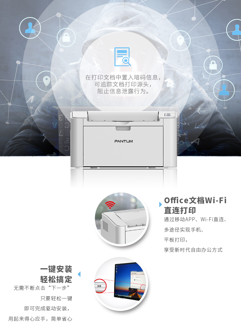 奔圖(PANTUM) P2535NW A4商用保密黑白激光打印機(jī) 有線/無(wú)線/雙面打印