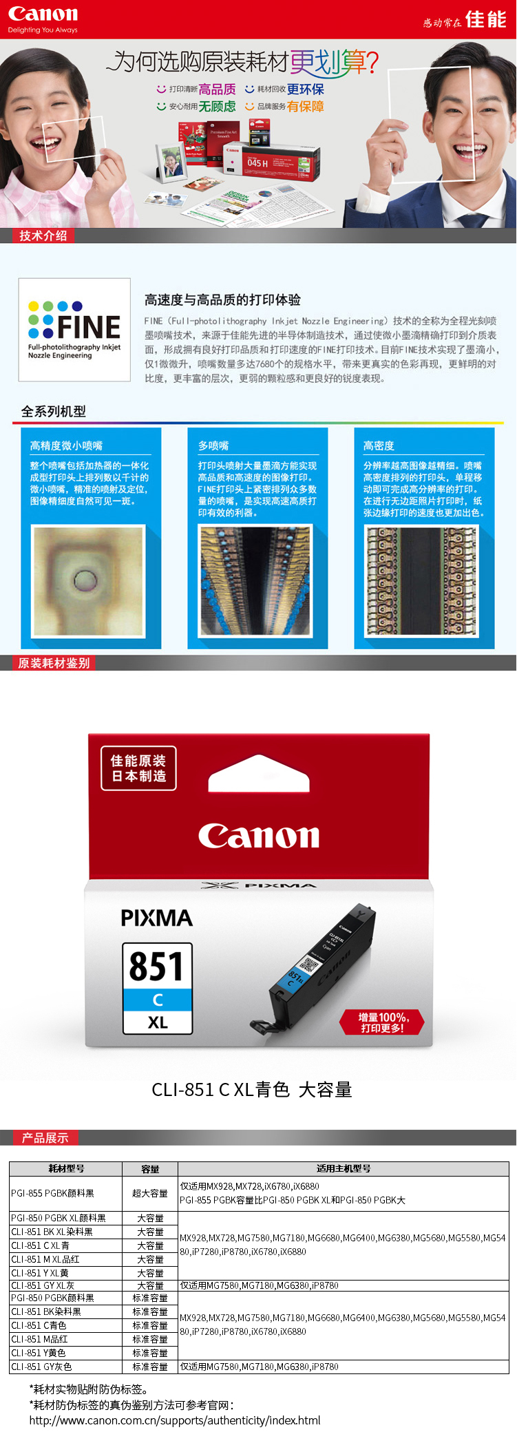 - 商品名稱:佳能(Canon) CLI-851XL GY 大容量灰色墨盒 打印量3350頁 適用于MG7580、MG7180、MG6380、iP8780