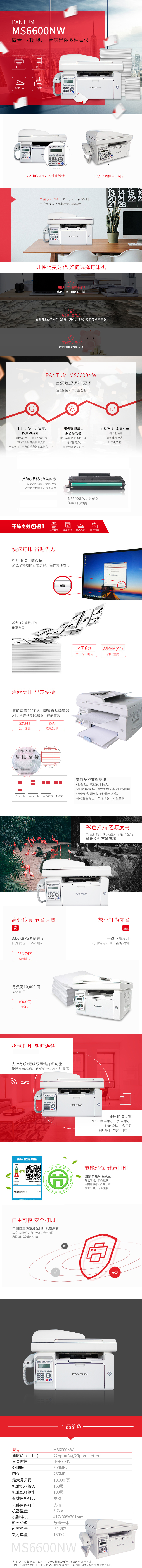 • 商品名稱:奔圖(PANTUM)MS6600NW A4黑白多功能一體機(jī) 打印/復(fù)印/掃描