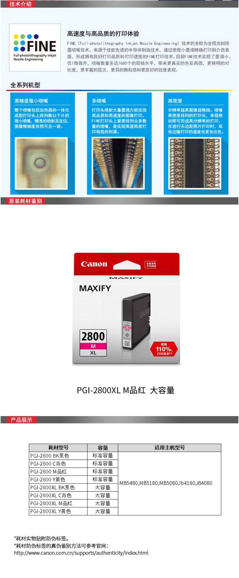 - 商品名稱:佳能(Canon) PGI-2800XL M 大容量紅色墨盒 打印量1500頁 適用于MB5480、MB5180、MB5080、iB4180、iB4080