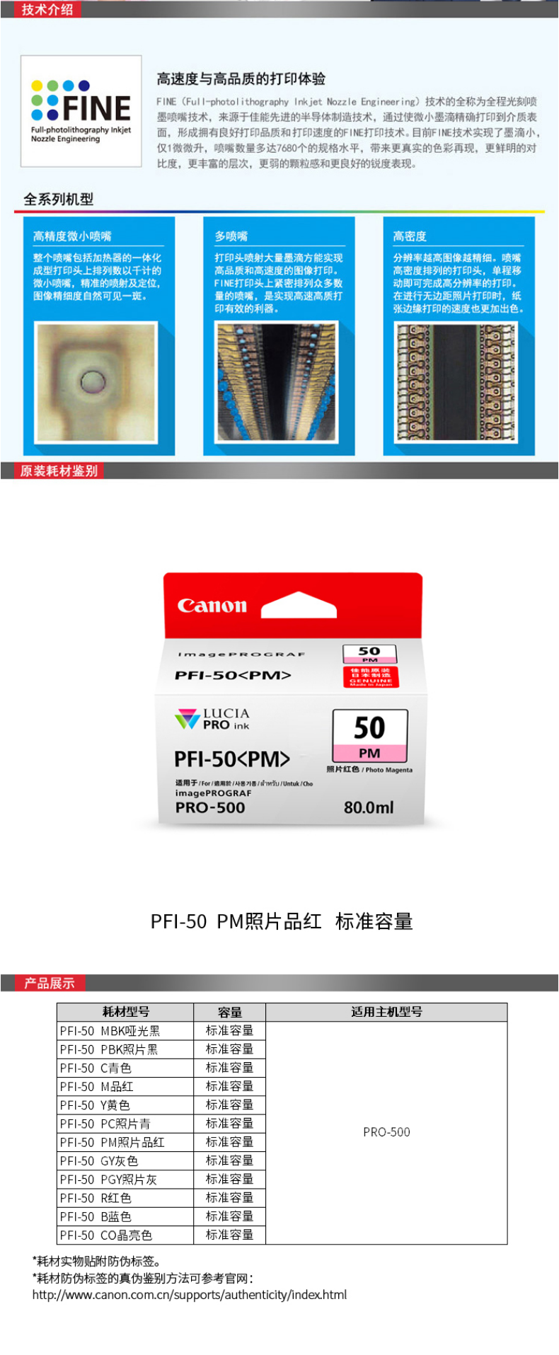 佳能(Canon) PFI-50 PM 照片紅色墨盒 打印量380頁 適用于imagePROGRAF PRO-500