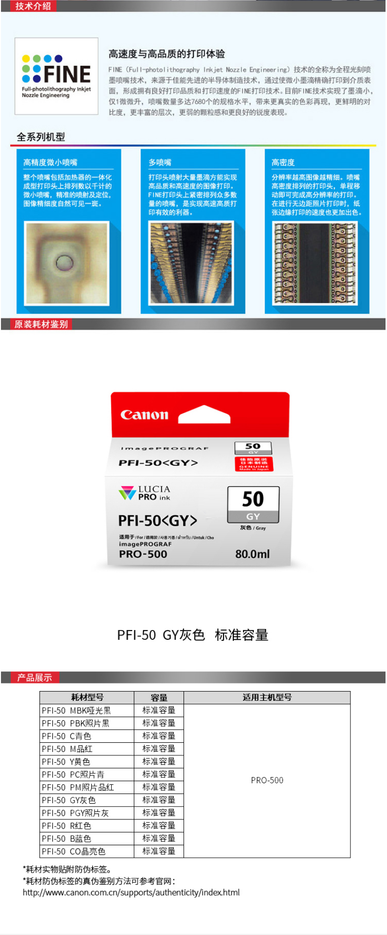 - 規(guī)格:PFI-50 GY 灰色墨盒