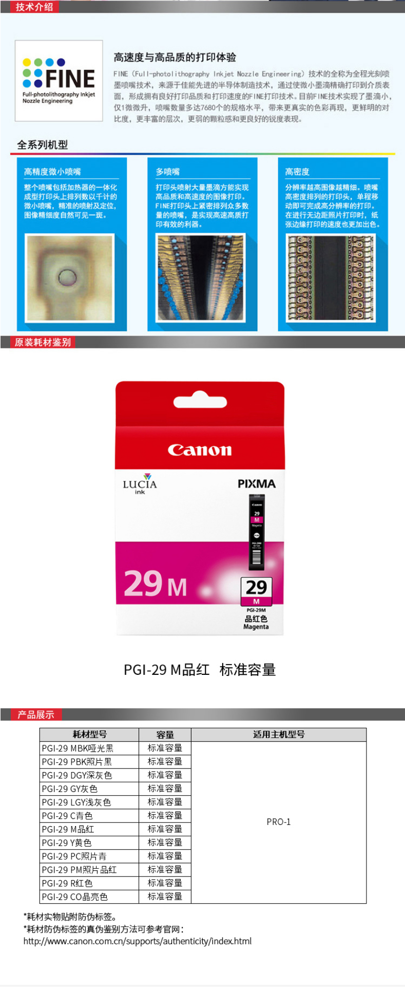 佳能(Canon) PGI-29 M ASA 品紅墨盒 打印量1755頁適用于PRO-1
