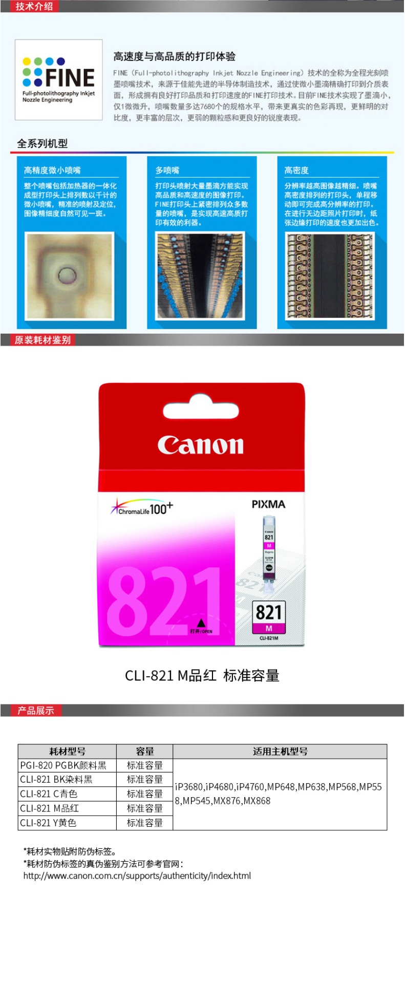 - 商品名稱:佳能(Canon) CLI-821 M 紅色墨盒 適用于iP3680、iP4680、iP4760、MP568、MP558、MP545、MX876、MX868