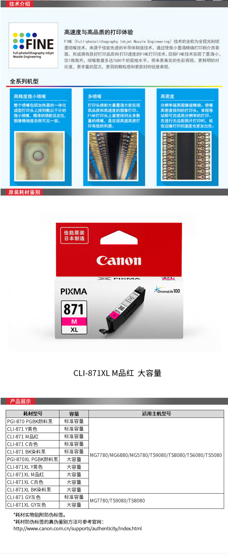 • 規(guī)格:CLI-871XL M 大容量紅色墨盒