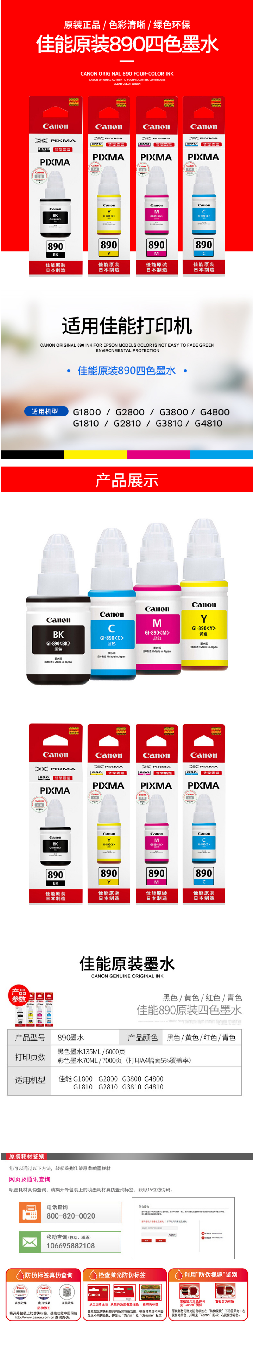• 商品名稱:佳能(Canon) GI-890 Y 黃色墨水瓶 打印量7000頁 適用于G4800、G3800、G2800、G4810、G3810、G2810、G1800、G1810