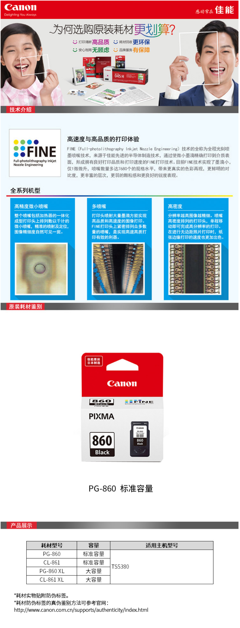 • 商品名稱:佳能(Canon) PG-860 黑色墨盒 打印量180頁 適用于TS5380