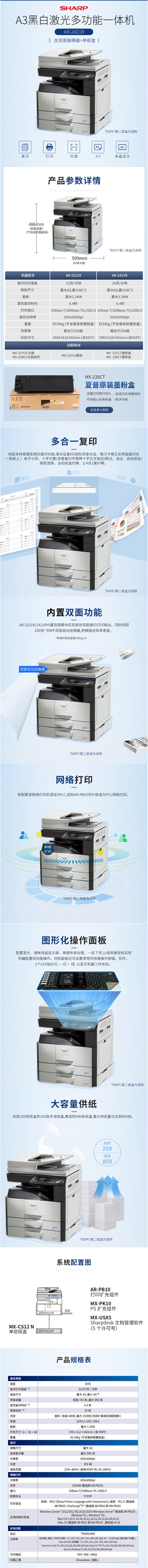 - 商品名稱:夏普(SHARP)AR-2421R A3黑白復(fù)印機(jī) 主機(jī)+雙面輸稿器+單紙盒