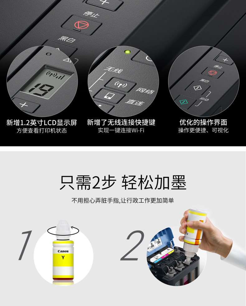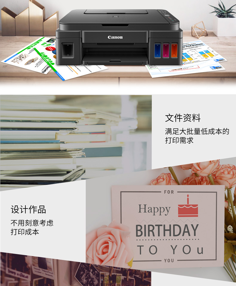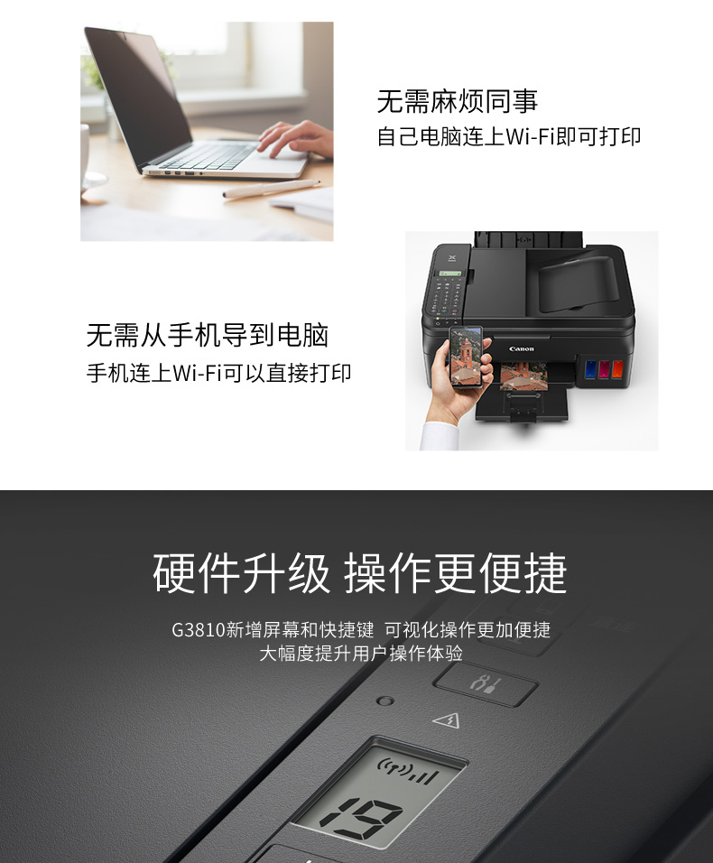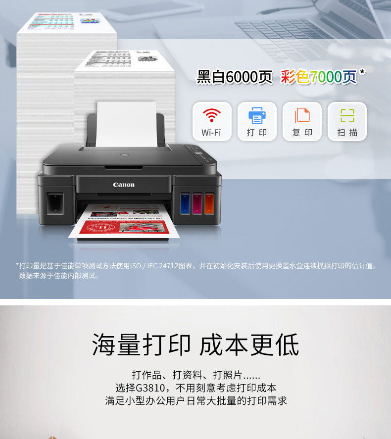 佳能(Canon) 騰彩PIXMA G3810 A4幅面加墨式高容量噴墨一體機(jī) 打印復(fù)印掃描