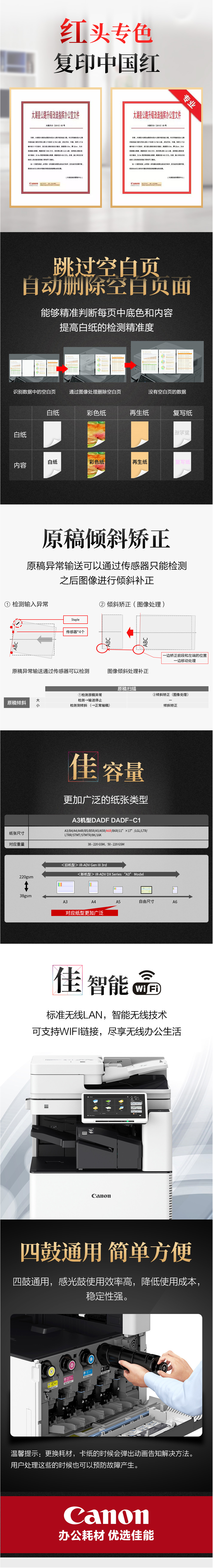 - 商品名稱:佳能(Canon)iR-ADV DX C3725 輕辦公 A3彩色數(shù)碼復合機 主機+雙面自動輸稿器+四紙盒