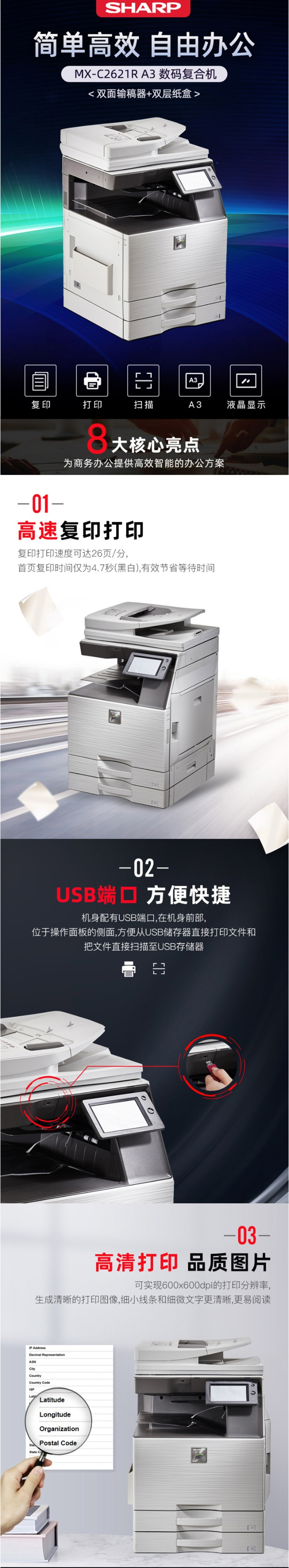 夏普(SHARP)復(fù)印機(jī)A3彩色 主機(jī) 單紙盒 MX-C2621R