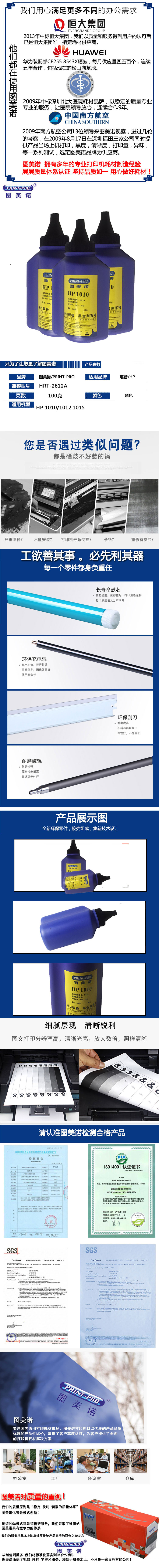 • 商品名稱:圖美諾 PRINT-PRO(HRT-2612A)HP1010碳粉100克 適用于HP 1010/1012/1015