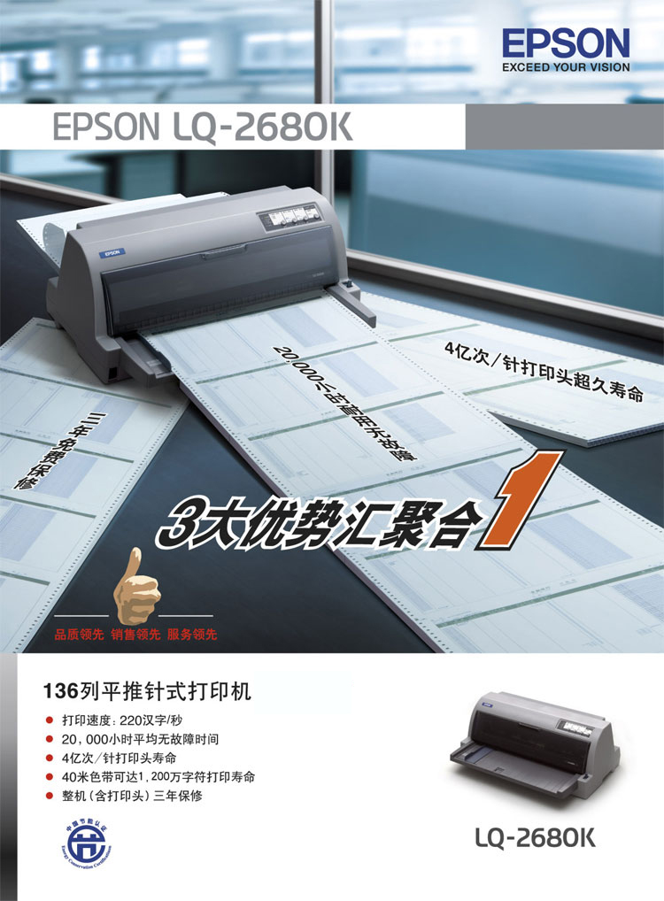 • 商品名稱:愛普生(EPSON) LQ-2680K 平推票據(jù)打印機 136列平推針式打印機
