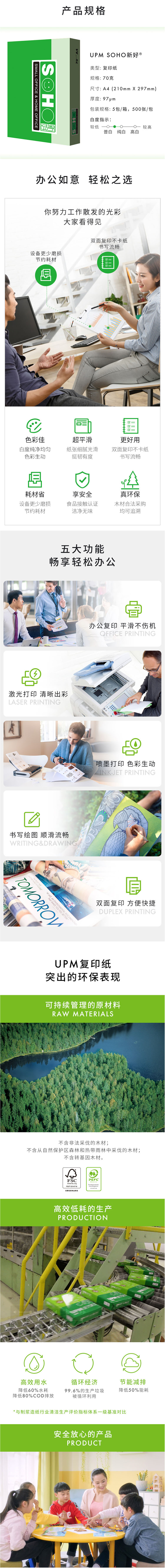 UPM新好 A4 70G 復(fù)印紙 500張/包 5包/箱