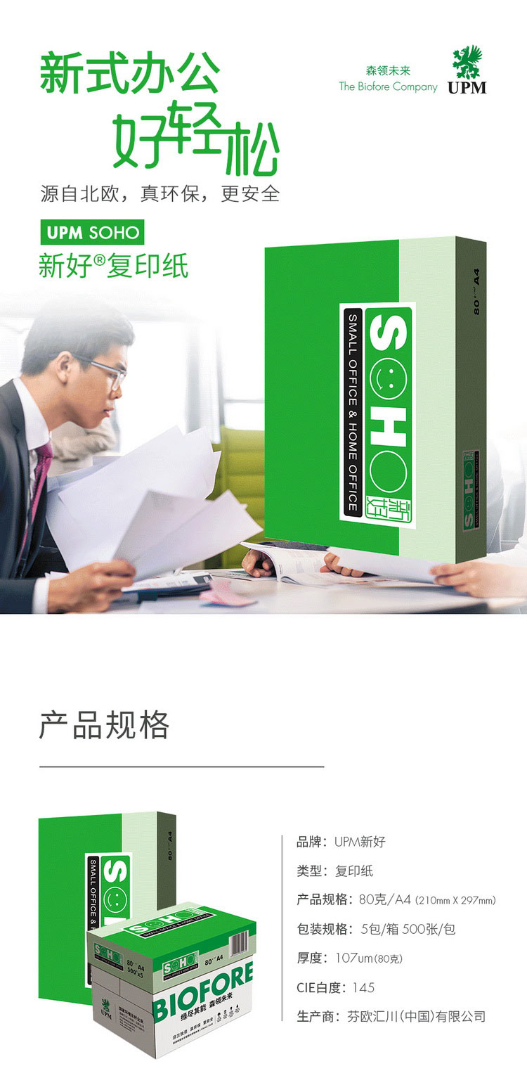 • 商品名稱:新好(SOHO) A4 80克 復(fù)印紙 500張/包 5包/箱 白色
