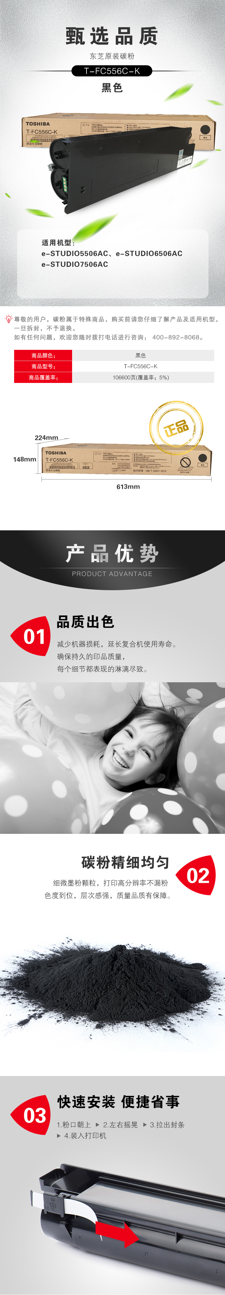 • 商品名稱:東芝(TOSHIBA)T-FC556C-K原裝碳粉 黑色 打印量39200頁 適用于e-STUDIO5506AC/6506AC/7506AC