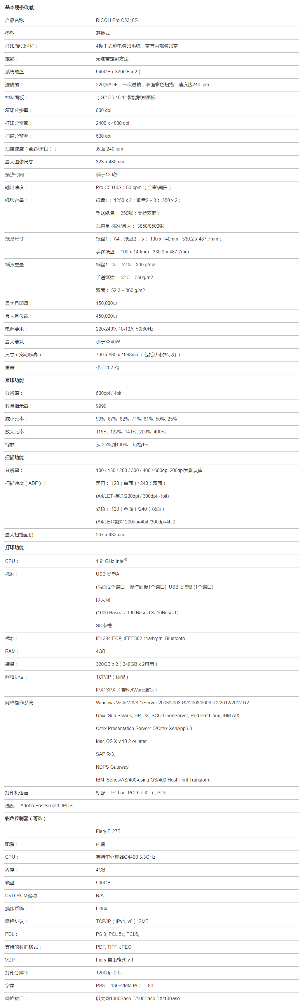 • 規(guī)格:Pro C5310S標(biāo)配+小冊(cè)子裝訂器