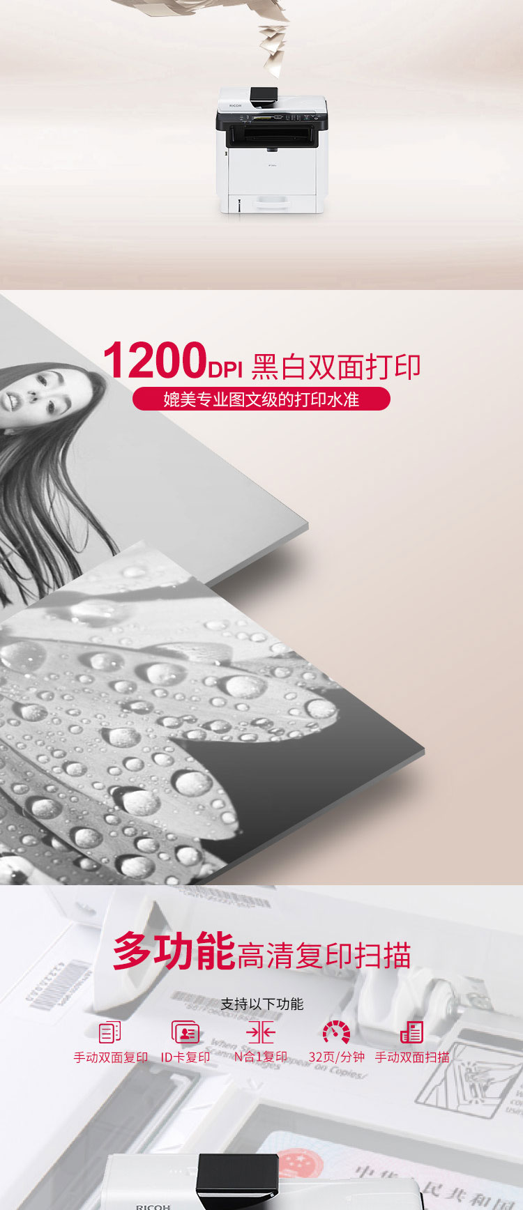 • 商品名稱:理光(RICOH) SP330S A4黑白多功能一體機(jī) 自動(dòng)雙面打印 掃描 適用耗材:P 330L/H型 一體式墨粉盒