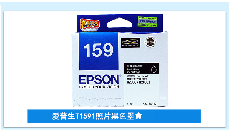 • 商品名稱:愛普生(EPSON)T1591 照片黑色墨盒 適合R2000 R2000S打印機(jī)