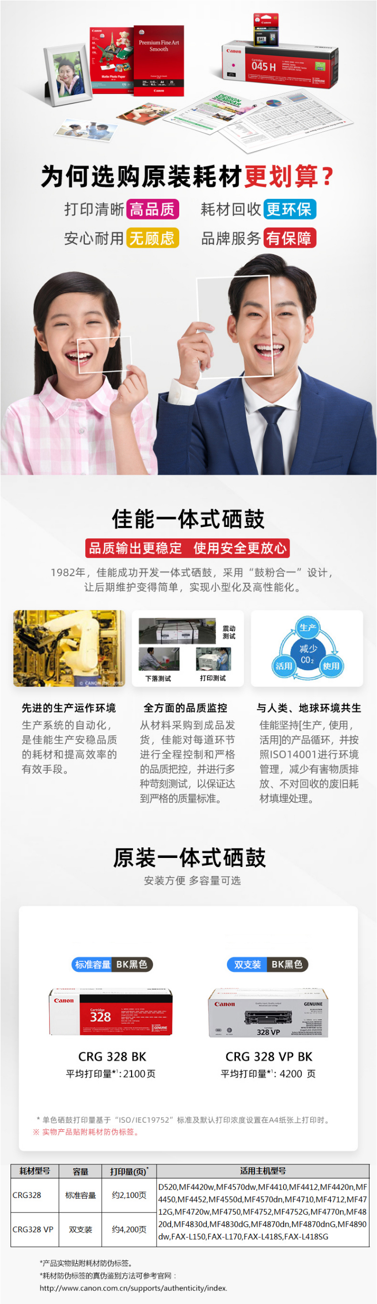 • 商品名稱:佳能(Canon) CRG-328VP 黑色硒鼓 雙支裝 打印量約4200頁 適用MF4712/MF4720w/MF4752
